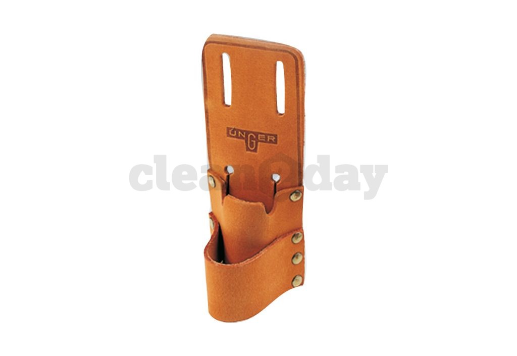 Gereedschapshouder van leer met twee vakken. Voor bevestiging aan de riem.