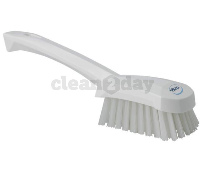 Vikan afwasborstel met harde vezels, een korte steel en een ergonomisch en praktisch design.