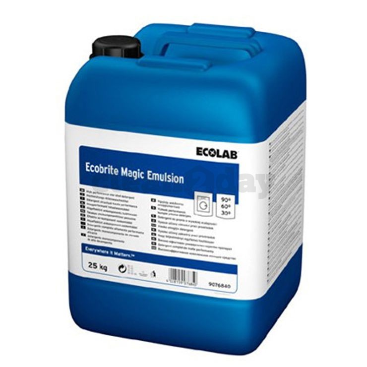 Ecolab Ecobrite Magic Emulsion is een hoogkwalitatief alkalisch totaalwasproduct voor automatische dosering. Dit vloeibare emulsie detergent levert al uitzonderlijke prestaties vanaf 40 °C. Behoud witheid en is zeer doeltreffend tegen voedsel- en vetvlekken. Beschermt textiel tegen kalkaanslag.