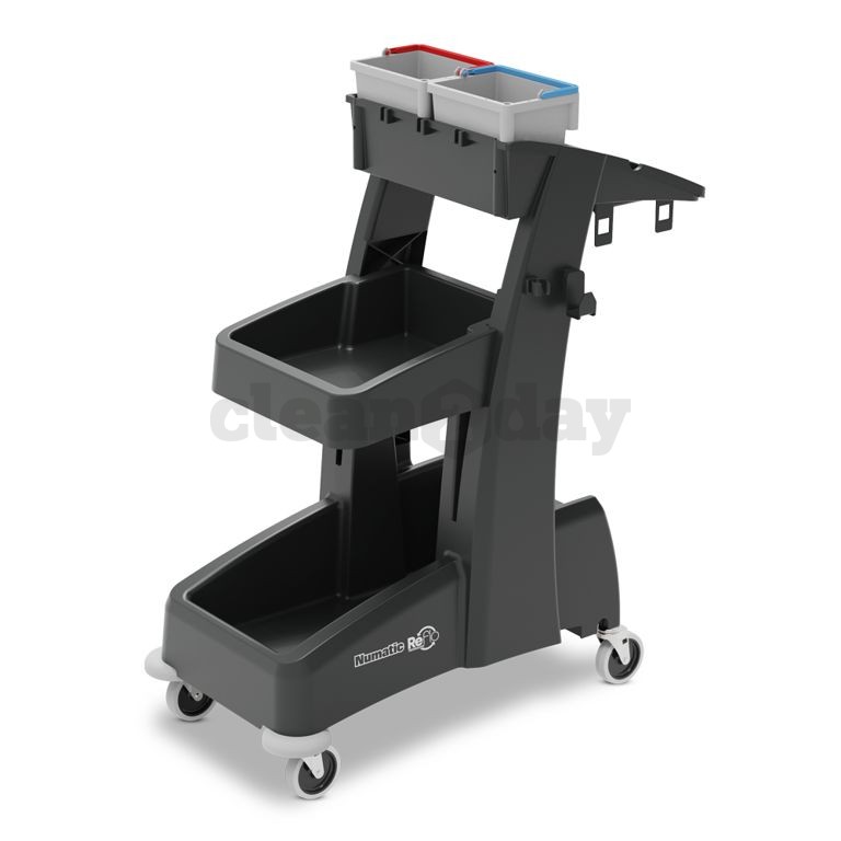 MULTI-Matic werkwagen met plateaus op verschillende niveaus voor spullen en artikelen bieden handige opbergoplossingen voor elke gebruiker. Handige opbergunits bovenop plus twee emmers van 5 l zodat alle schoonmaakartikelen makkelijk bereikbaar zijn.